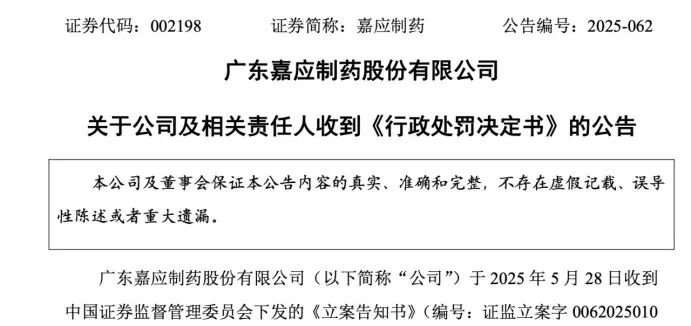 被立案近半年后,嘉应制药(002198)(002198)的信息披露违法违规迎来最终处理结果,嘉应制药及相关责任人合计领到490万元罚单。连同罚单落地的,还有广东证监局出具的警示函、深交所下发的监管函以及公开谴责的处分决定。