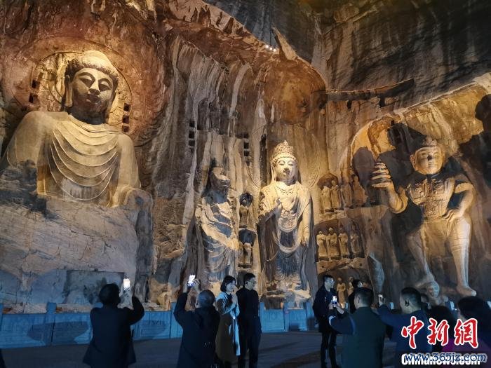 资料图为游客夜游洛阳龙门石窟粤有钱。刘鹏摄