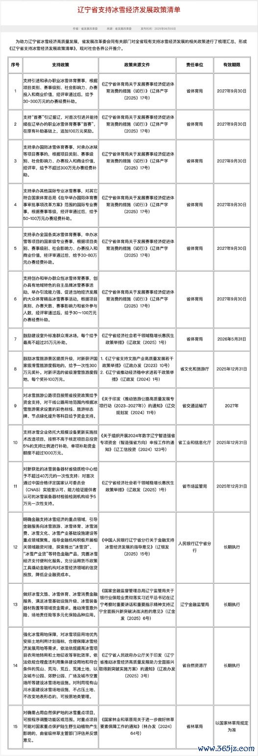 为助力辽宁省冰雪经济高质量发展,辽宁省发展改革委会同有关部门对全省现有支持冰雪经济发展的相关政策进行了梳理汇总,形成《辽宁省支持冰雪经济发展政策清单》,现对社会各界公开推介。其中,支持引进和承办职业冰雪体育赛事,根据项目类别、赛事级别、社会影响力、办赛投入和商业价值搭搭网,经评审通过后,给予30~300万元的办赛经费补助。支持“首赛”引辽留辽,对首次引进并能持续在辽举办的职业冰雪体育赛事“首赛”,在原有补助基础上,追加100万元奖励。